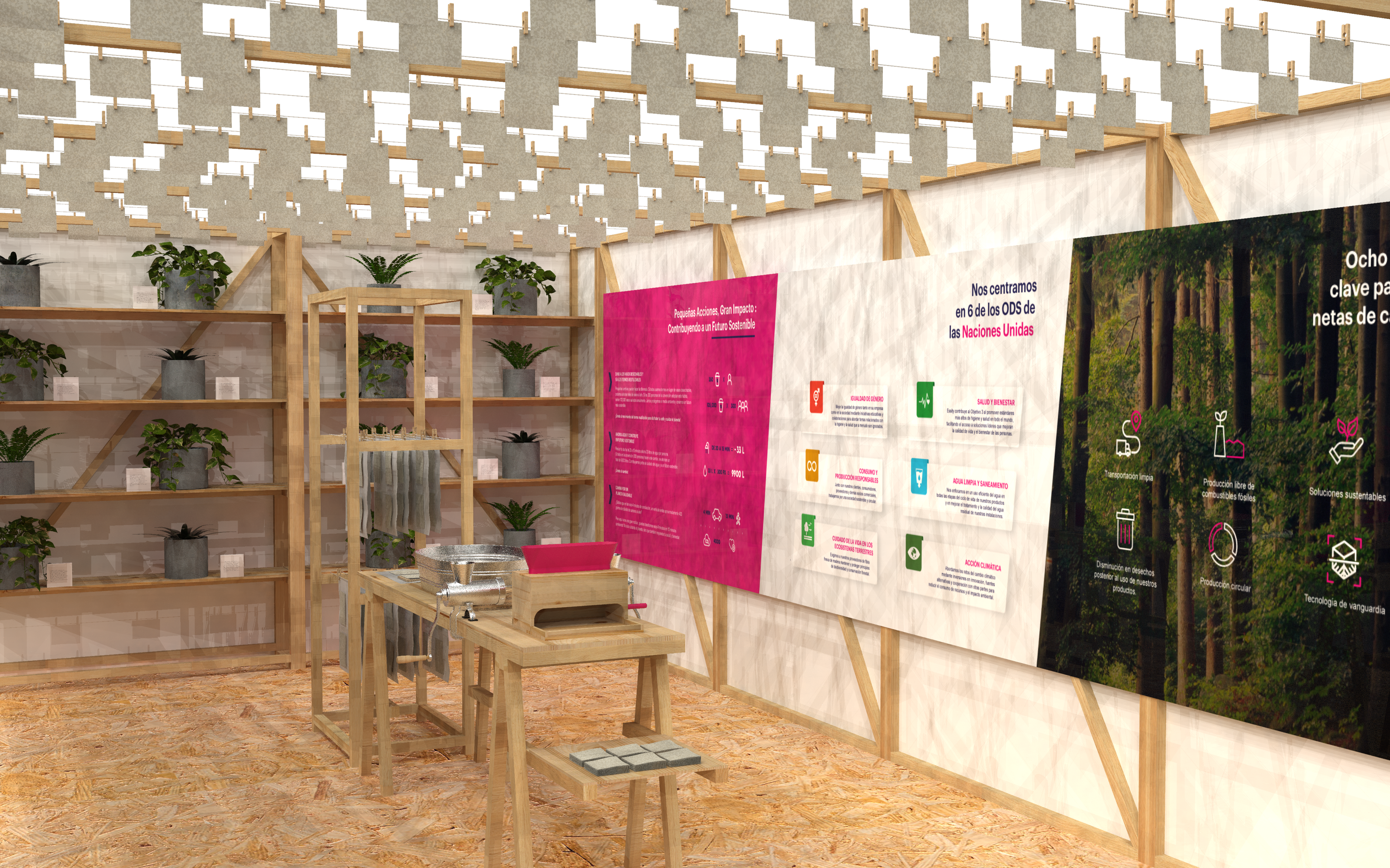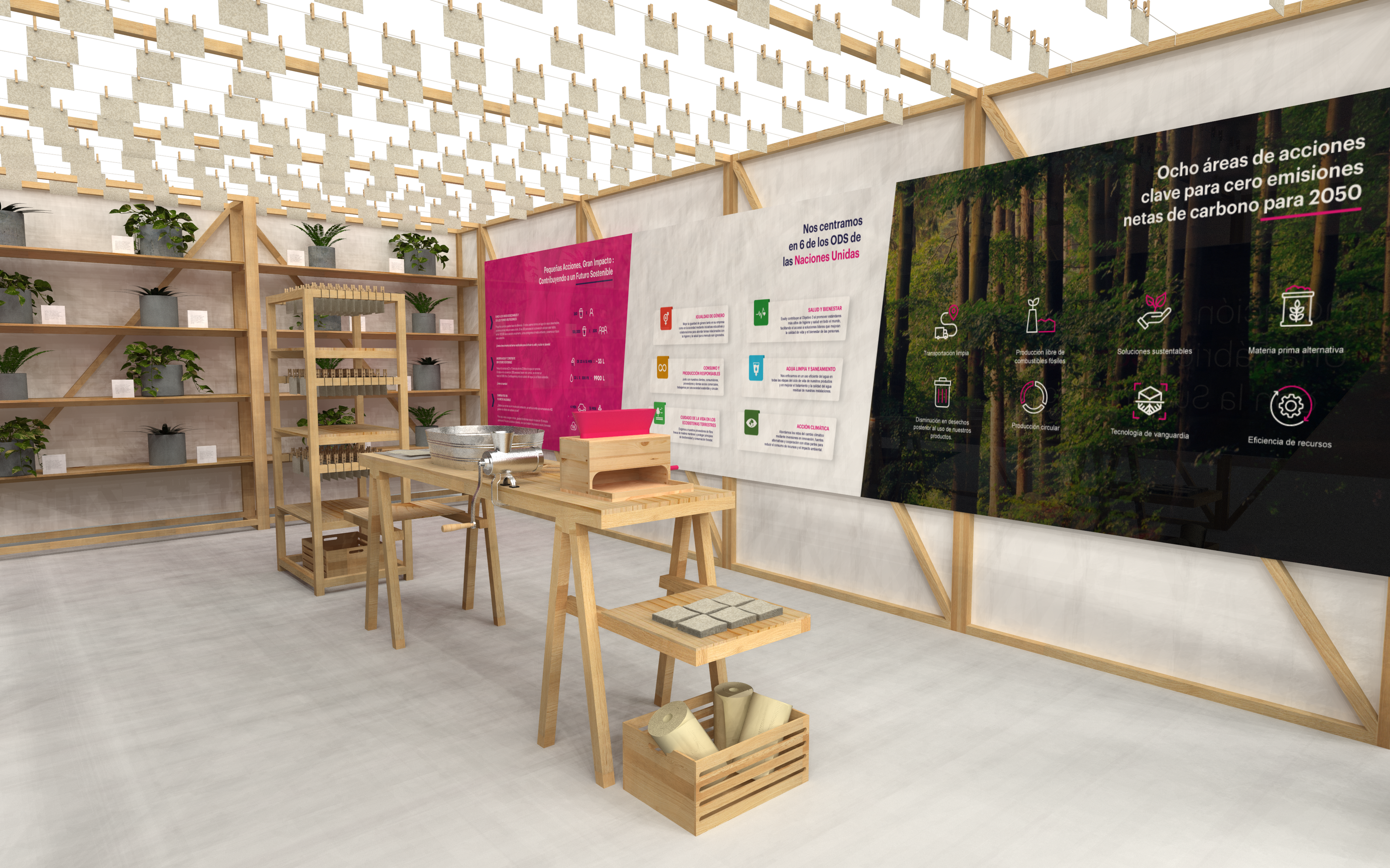 Proyecto desarrollado en WeAgency. En este proyecto desarrollamos un stand educativo e interactivo para Essity, enfocado en comunicar de forma clara y atractiva sus procesos y objetivos de sostenibilidad a corto, mediano y largo plazo. La experiencia permitió a los visitantes comprender el impacto real de la sustentabilidad mediante una exhibición interactiva con las 15 plantas que más purifican el aire, reforzando el vínculo entre diseño, educación y medio ambiente. El recorrido se complementó con un taller práctico de papel reciclado, donde los asistentes fabricaron sus propias hojas, llevando la sostenibilidad del discurso a la acción cotidiana. Diseño educativo con propósito: informar, involucrar y generar cambio real.